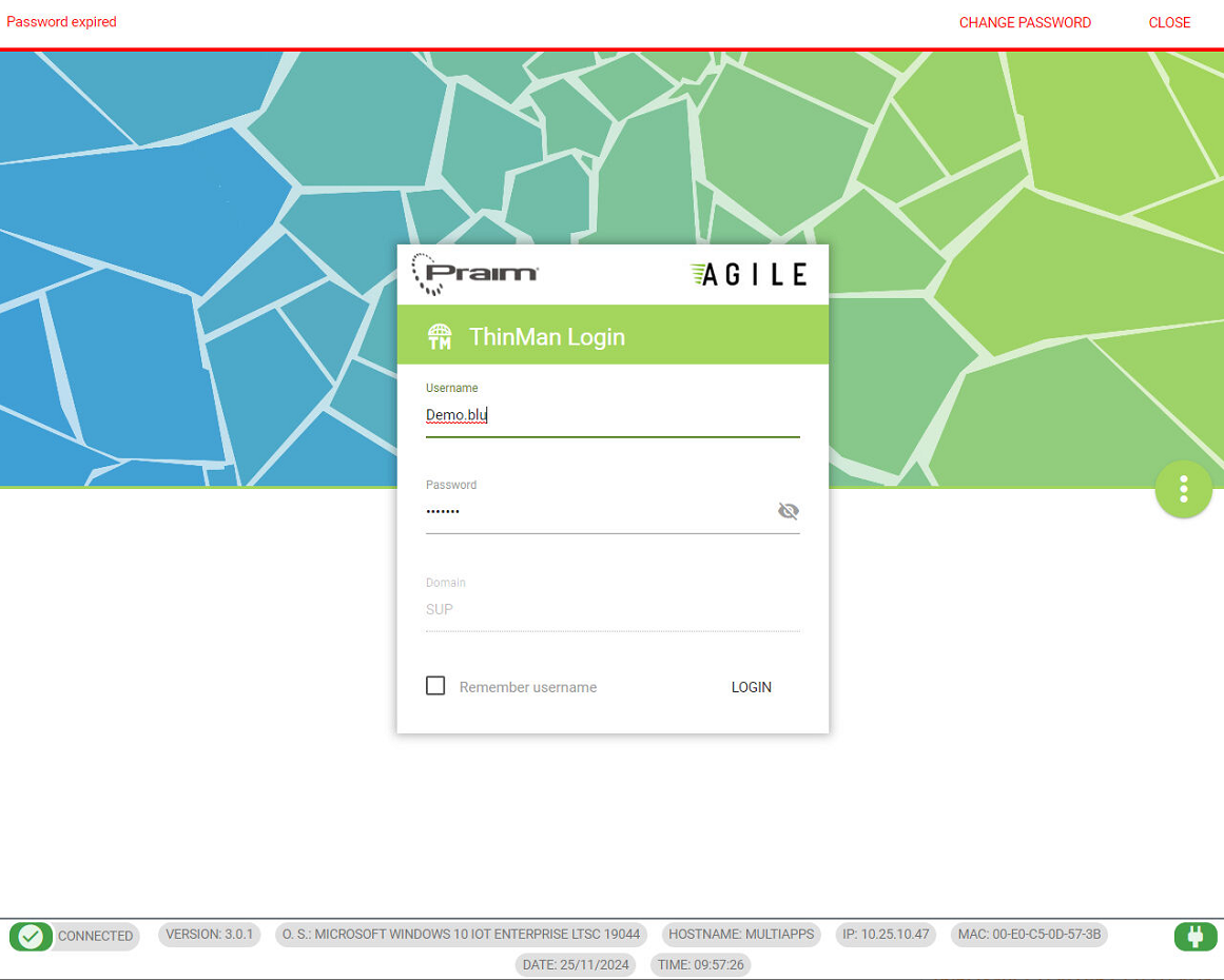 When attempting to access the device via ThinMan Login with an expired LDAP password, the system will display the message Password Expired (refer to the image below).