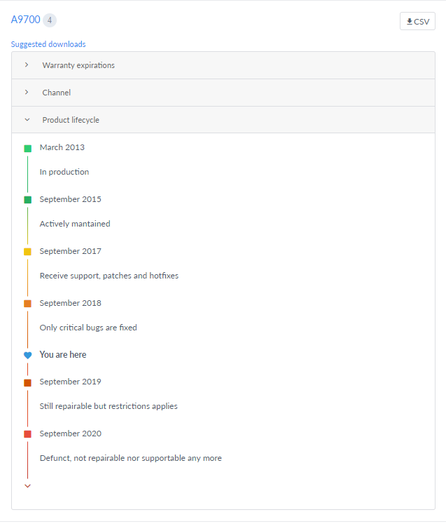 On each model device, you will find a Product lifecycle option.